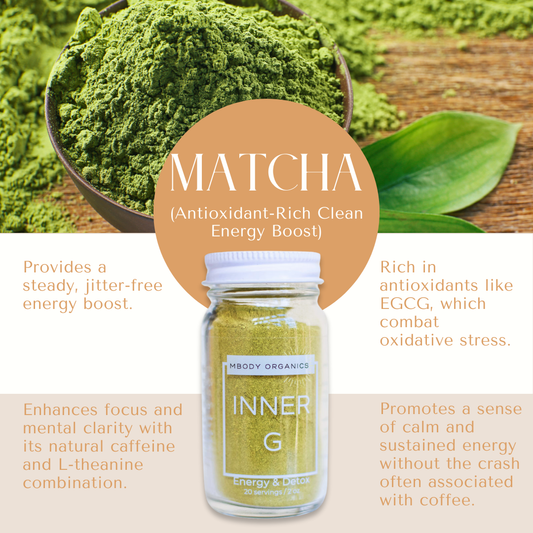 - Inner G: Yes, it contains natural caffeine from matcha for a clean energy boost.